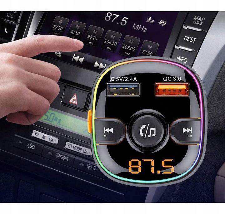 Transmiter Samochodowy FM to uniwersalne urządzenie dzięki któremu jesteśmy w stanie odtworzyć muzykę ze swojego smartfona lub karty pamięci na głośnikach samochodowych oraz naładować telefon lub inne urządzenie.